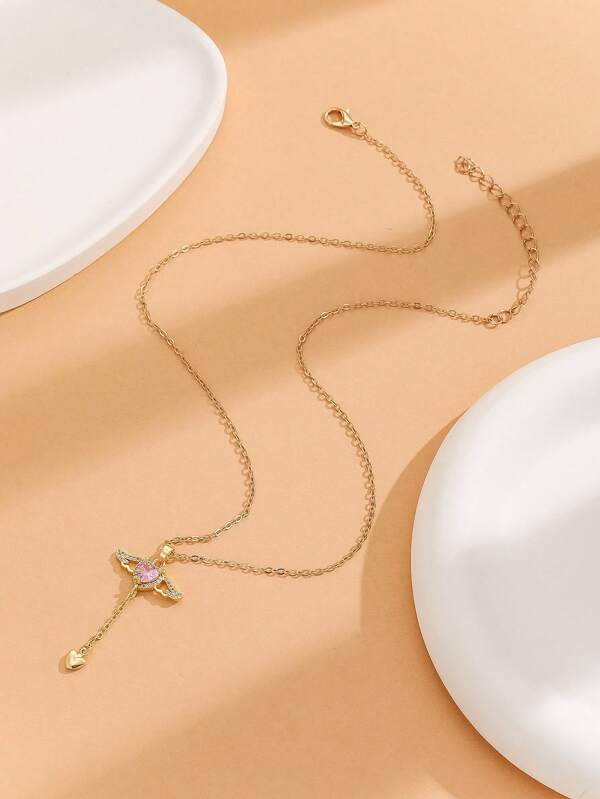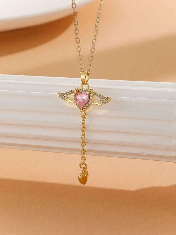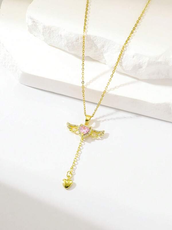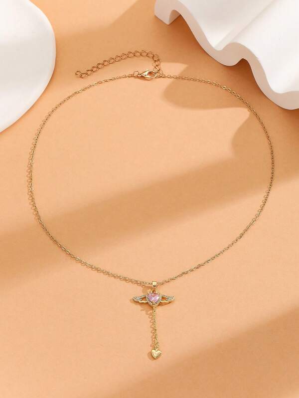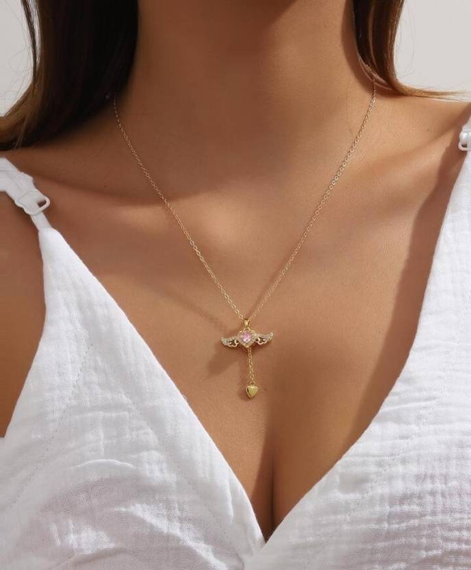 Angelwing Necklace Crystal Gold-Plated Stainless Steel Silver Diamond Necklace For Women