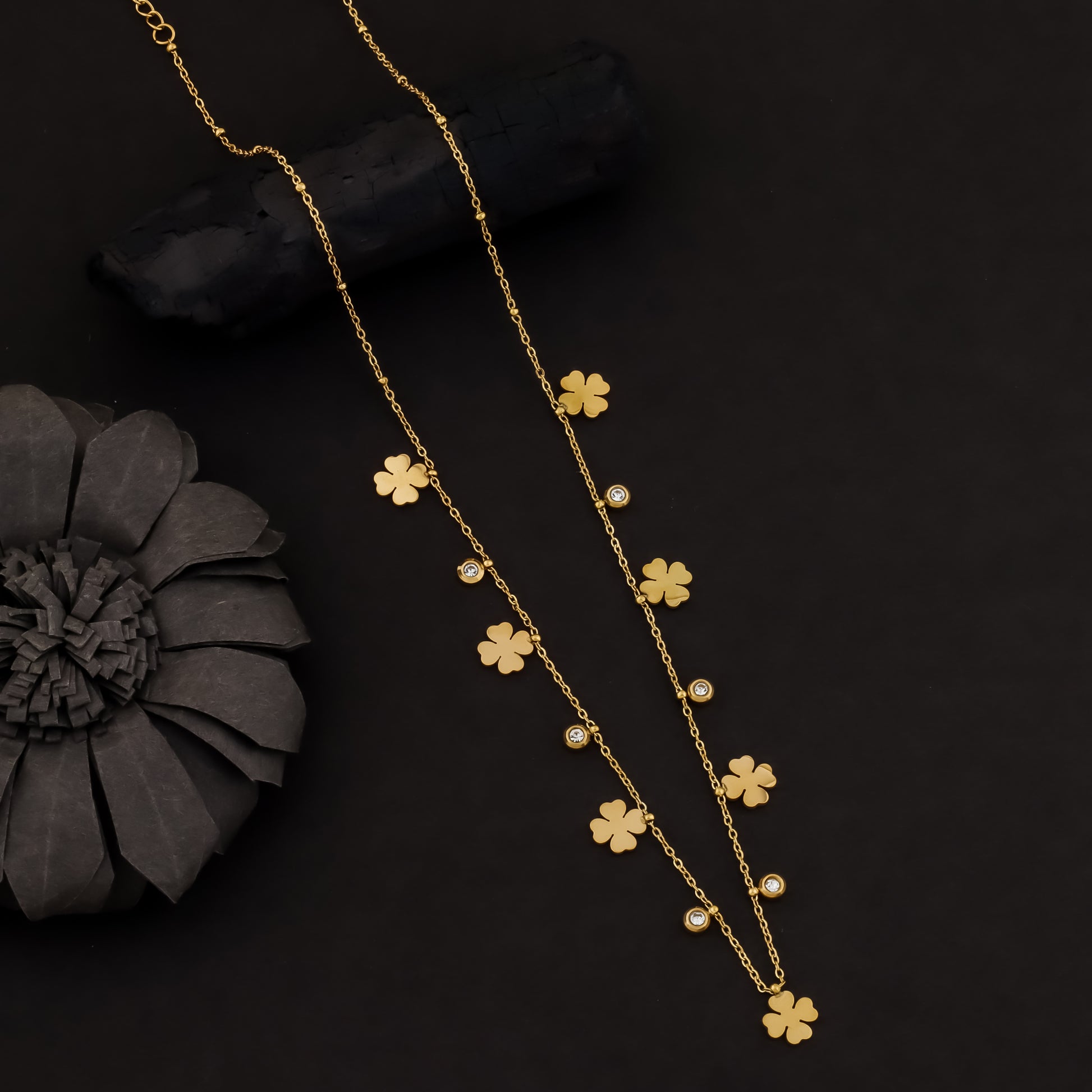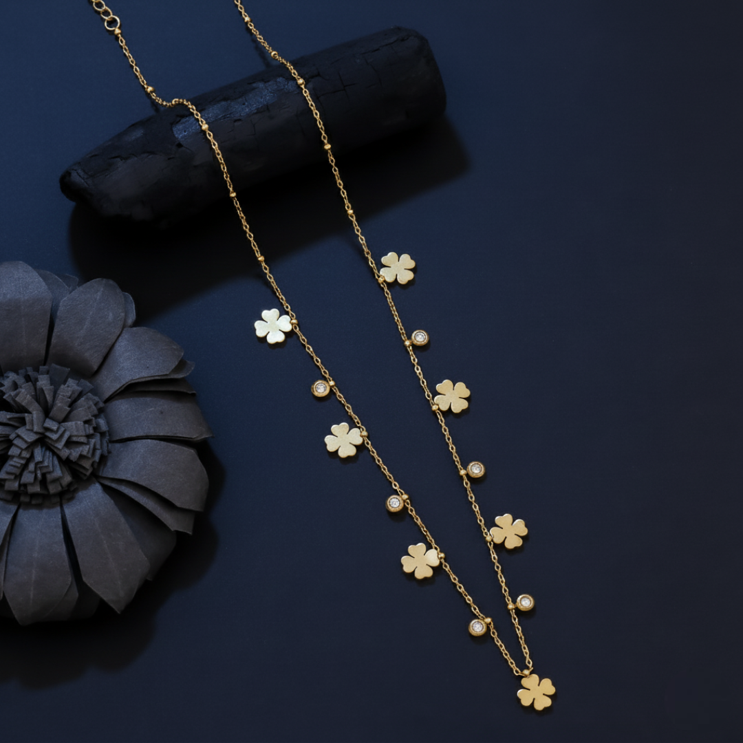 Illuminate your style with our clover Necklace, the latest design in contemporary necklaces for women. This exquisite piece features a celestial-inspired pendant adorned with shimmering clover, exuding enchanting beauty and timeless charm. Crafted with meticulous attention to detail and using high-quality materials, this necklace is a must-have addition to every woman's jewelry collection.